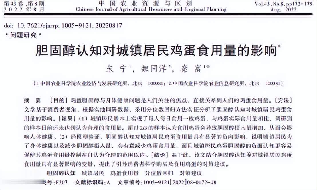 参考资料朱宁.胆固醇认知对城镇居民鸡蛋食用量的影响广东股票配资,中国农业资源与区划,2022-08-25