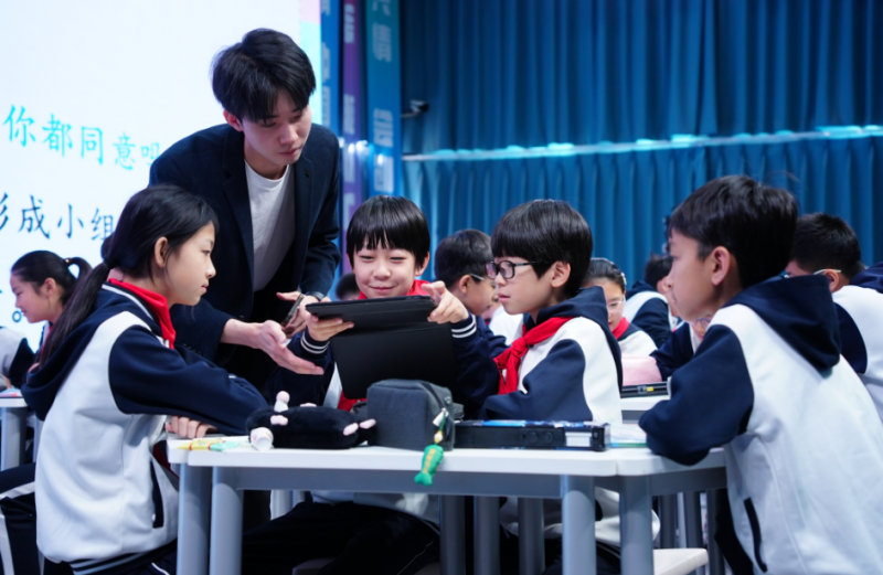 据悉,此次活动打造24节全学科数智化展示课。主会场中,数学肖凯捷老师执教《圆柱与圆锥的思维探秘之旅》、数学徐强老师展示《绿色出行》,巧妙将数智场景与思维训练、深度学习有机结合,通过AI赋能引导学生主动探究、深度思考,在沉浸式学习中提升思维能力与核心素养。课后,北京市基教研中心副高级教师于国文老师结合两节数学课进行点评,聚焦数智赋能下智能体如何在教学中发挥以人为本作用,同时在点评中充分肯定了白家庄小学在课堂教学中充分体现了AI特色。